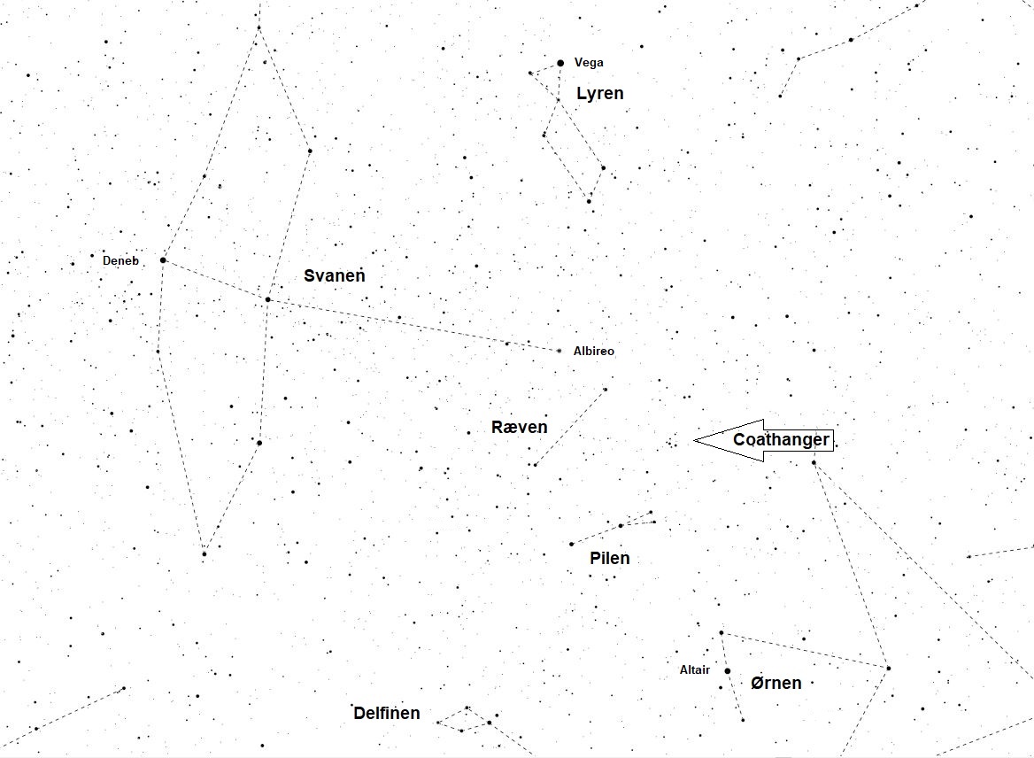 The Coathanger består af 10 stjerner, som er klarere end 7. størrelsesklasse. Den klareste er 4 Vulpeculae på mag. 5,1. 5 Vulpeculae har mag. 5,6 og 7 Vulpeculae mag. 6,3. Disse stjerner kan afhængigt observationsforholdene og observatørens synsevne lige netop ses uden optiske hjælpemidler.