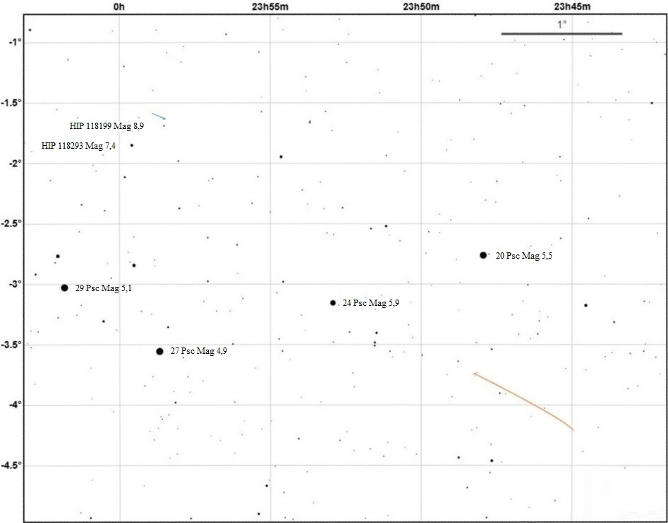 Saturns position mellem Vandmanden og Fiskene umiddelbart under Pegasusfirkanten.
