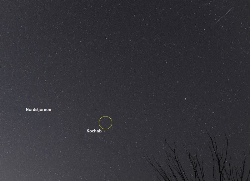 Ursidernes radiant ligger i den gule cirkel. Letgenkendelig er Karlsvognen og en enkelt Urside.