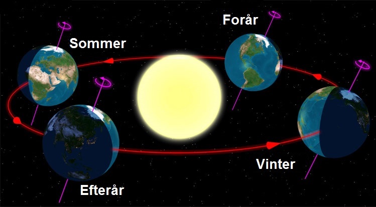 Årstiderne. Jordens bane og aksehældning.