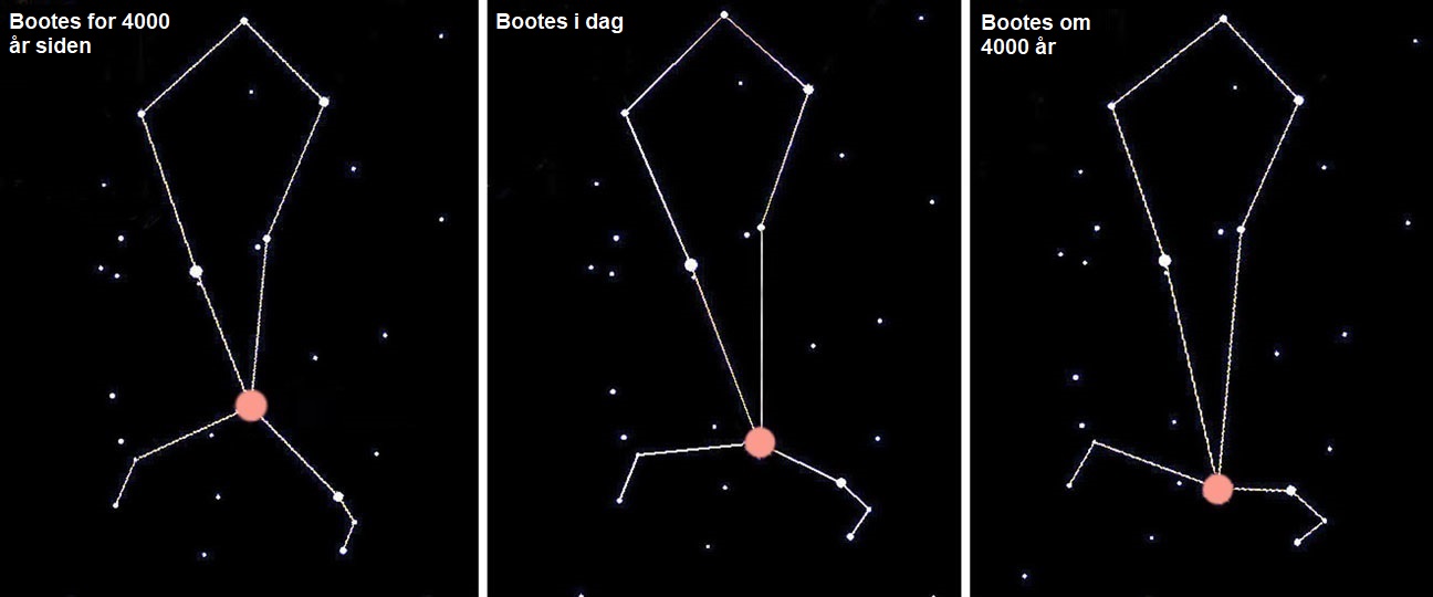 Arcturus’ hurtige bevægelse ændrer gennem tiden markant Bootes udseende. Figuren minder om en legetøjsdrage, som bliver mere og mere langstrakt. Om nogle millioner har Arcturus fjernet sig så meget, at den ikke længere er synlig fra Jorden. Som det fremgår, bibeholder de øvrige stjerner stort set deres indbyrdes position. De ligger så meget længere væk, at egenbevægelsen vanskeligt kan registreres med det blotte øje på et så kort tidsrum som 8000 år.