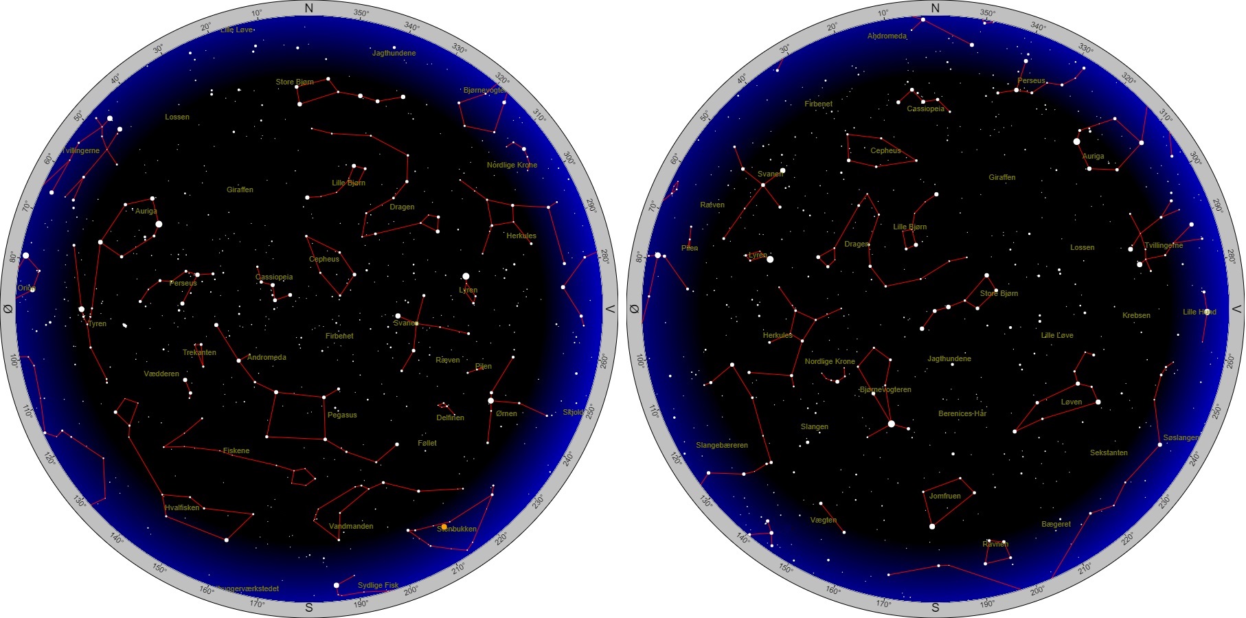 Stjernehimlen 1. januar kl. 17:00 og 2. januar kl. 07:00.