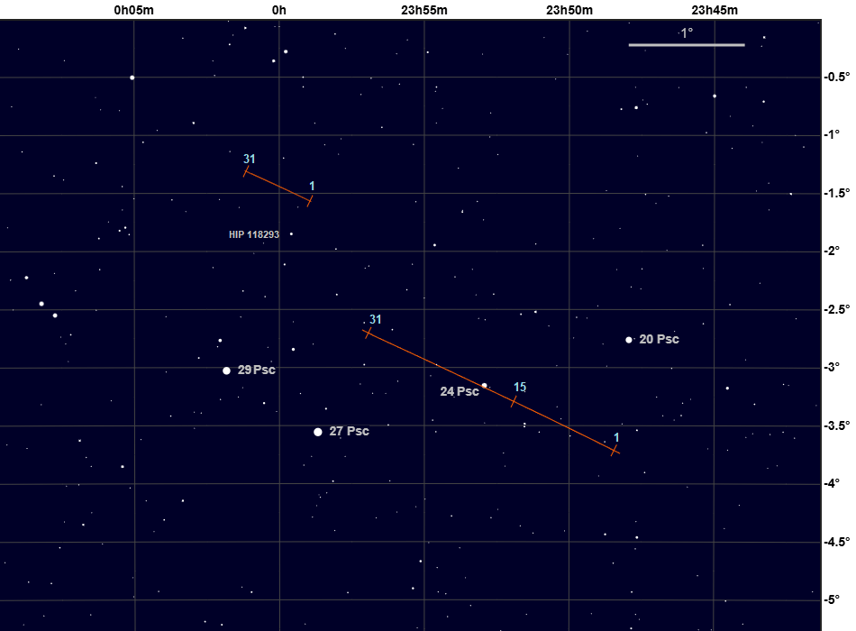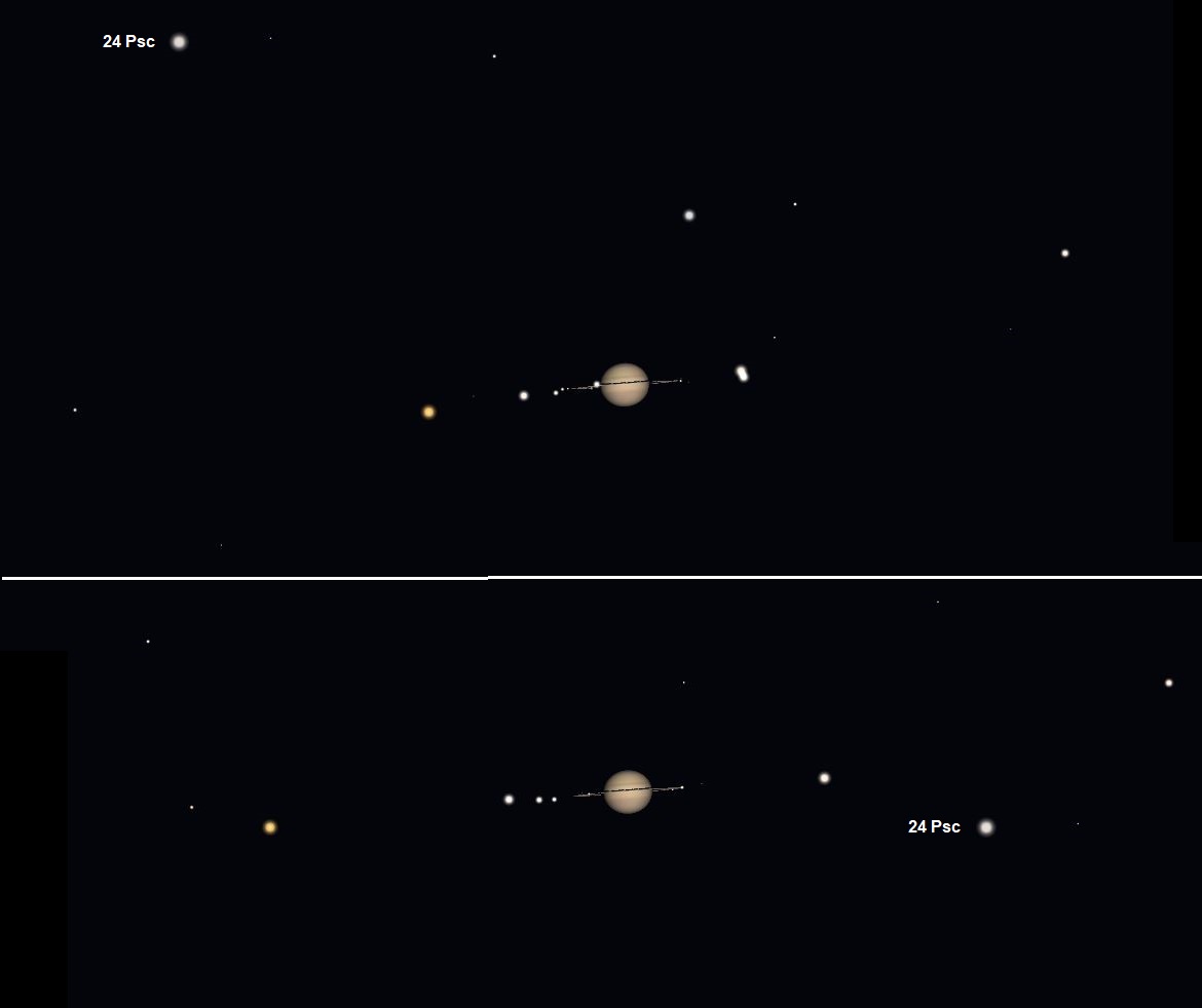 Saturn og 24 Psc 18. januar (øverst) og 19. januar (nederst).