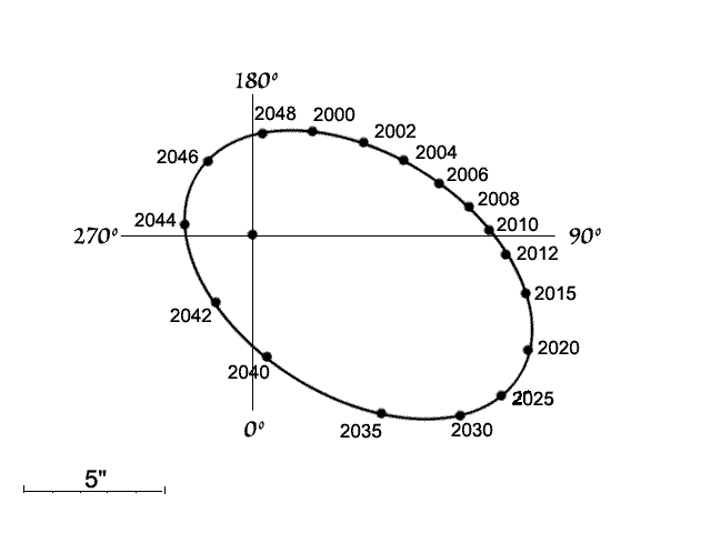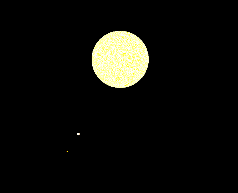 Sirius A og B. Omløbstiden er 50 år. I øjeblikket er adskillelsen tæt på det maksimale.