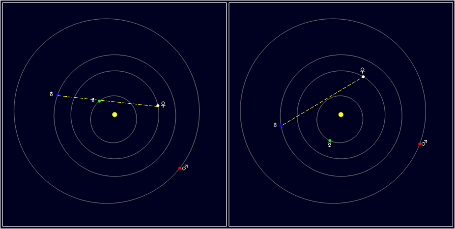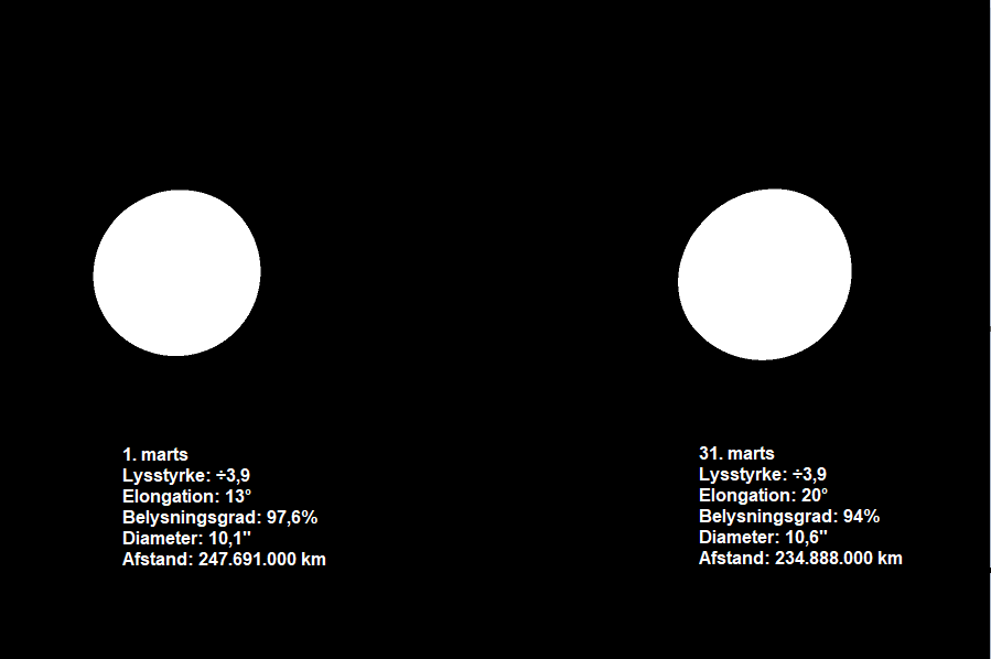 Venus’ udseende den 1. og 31. marts.