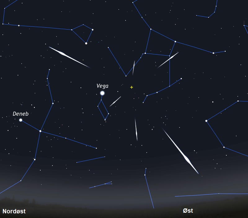 Den årligt tilbagevendende meteorsværm Lyriderne forventes at have maksimum natten mellem 22. og 23. april. I nætterne før og efter, er aktiviteten næsten lige så stor. Det er nogle få dage efter nymåne, og da Lyriderne i lighed med de øvrige meteorsværme som regel er bedst efter midnat, vil det bedste tidspunkt være i de tidlige morgentimer, hvor Månen enten vil være gået ned eller stå meget lavt mod vest. Med en ZHR på 10-20 under maksimum er Lyriderne en af årets mindre sværme.
