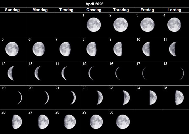 April er den sidste måned på denne side af sommer, hvor himlen er mørk midt på natten. I maj begynder de lyse nætter, og de er først slut her i Danmark i begyndelsen af august. På grund af sommertiden går Solen først ned ved 20-tiden ved månedens begyndelse, og sidst på måneden bliver den på himlen til kl. 21. Det betyder naturligvis, at man må vente til et godt stykke ud på aftenen, før nattemørket sænker sig.