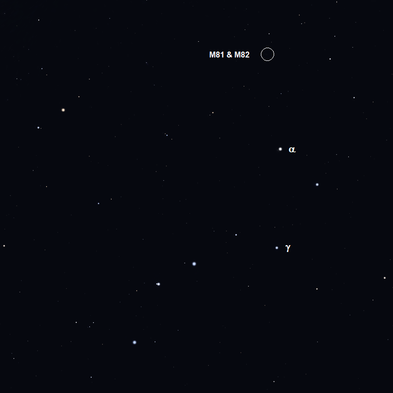 Det er også muligt at finde to galakser ved hjælp af Karlsvognen og en god prismekikkert. M81 og M82 hører til blandt de klareste galakser på himlen, og at finde dem er næsten lige så nemt som at finde Nordstjernen og Capella. Start med γ Uma og træk derefter en linie gennem α UMa og fortsæt lige så langt som afstanden mellem de to stjerner. Her findes to udviskede pletter, den ene rund og den anden cigarformet. M81 og M82 ligger mindre end 1° fra hinanden svarende til to månediametre og vil derfor nemt kunne ses i samme synsfelt i en god prismekikkert eller gennem et teleskop med lav forstørrelse.