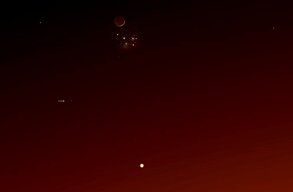 Venus, Månen og Plejaderne den 19. april.